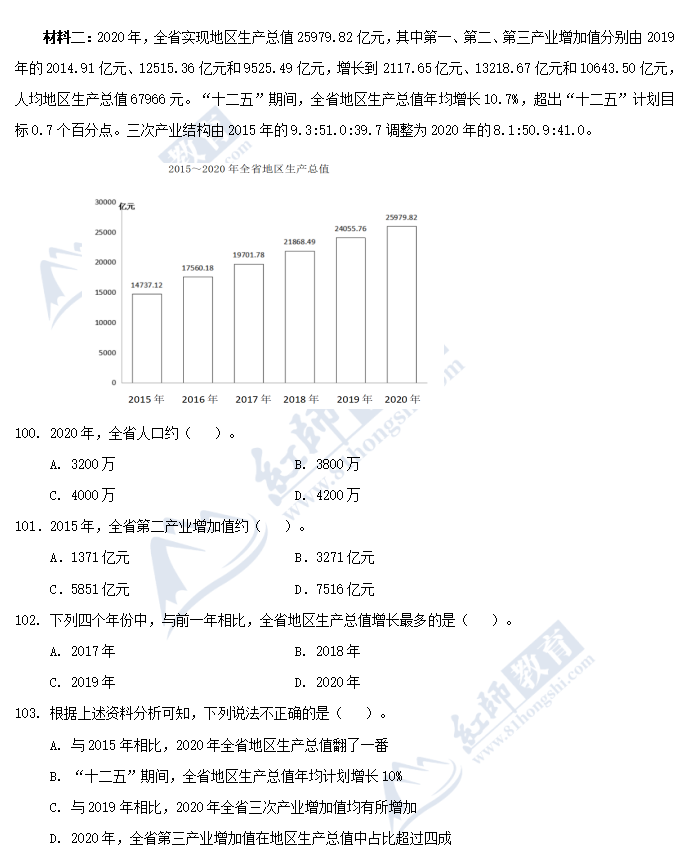 96 答案:C。解析:考點直接查找型。由文字資料得,第三季度農(nóng)產(chǎn)品生產(chǎn)價格總指數(shù)比去年同期相比下降了3 9%,故本題答案為C?! ?7 答