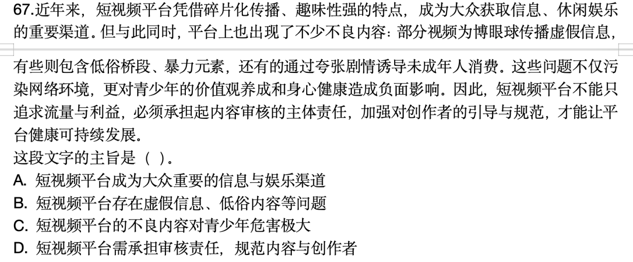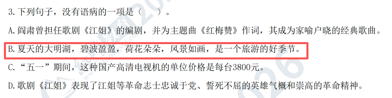 原題:62. 下列句子沒(méi)有語(yǔ)病的是( )。