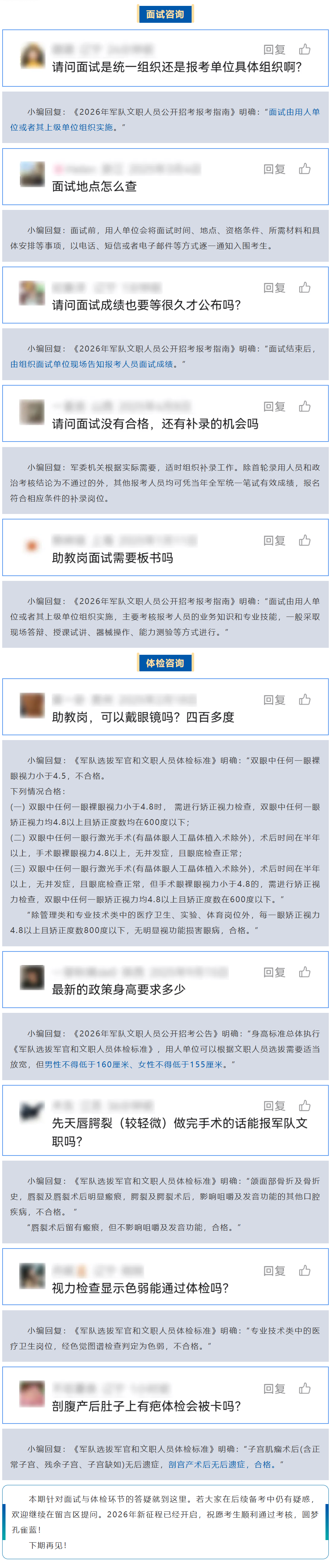 《2026年軍隊(duì)文職人員公開招考公告》明確,公開招考筆試成績(jī)將于本月底左右正式公布。成績(jī)發(fā)布后,面試、體檢等工作將陸續(xù)展開。為幫助大家精準(zhǔn)把握后續(xù)有關(guān)問題,我們整理了本期“答考生問”,供您參考。