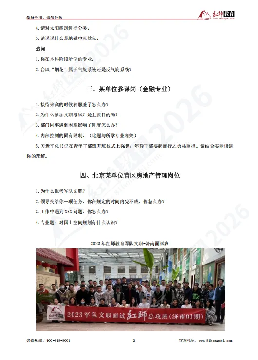 軍隊文職面試環(huán)節(jié)很重要,占總成績的40%,面試表現(xiàn)不好的話,筆試分再高也挽救不了被刷的命運(yùn)。紅師教育為大家準(zhǔn)備了歷年紅師學(xué)員回憶題。