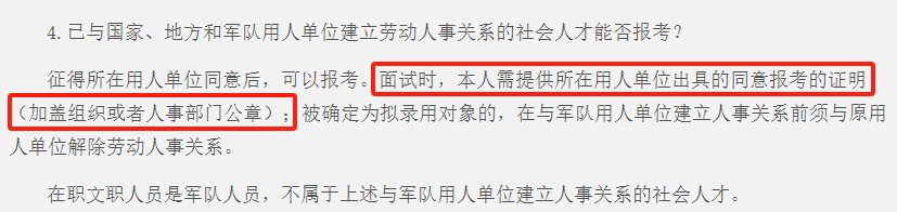 《單位同意報(bào)考證明》是軍隊(duì)文職考試中,針對(duì)有工作單位的考生的一項(xiàng)重要材料,在考生通過(guò)筆試,進(jìn)入面試環(huán)節(jié)后,其重要性體現(xiàn)在以下幾個(gè)方面: