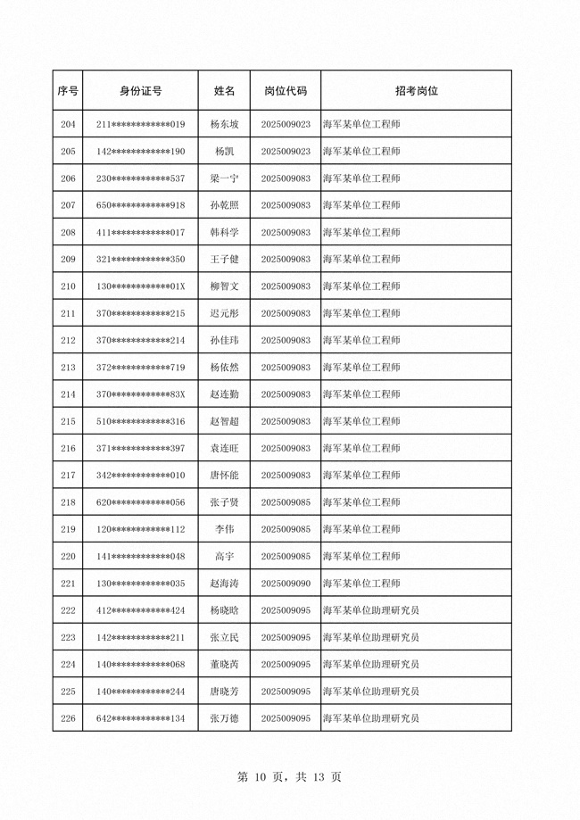 2025年武裝部文職人員擬錄用名單(含上岸分?jǐn)?shù)線) 2025-10-09
