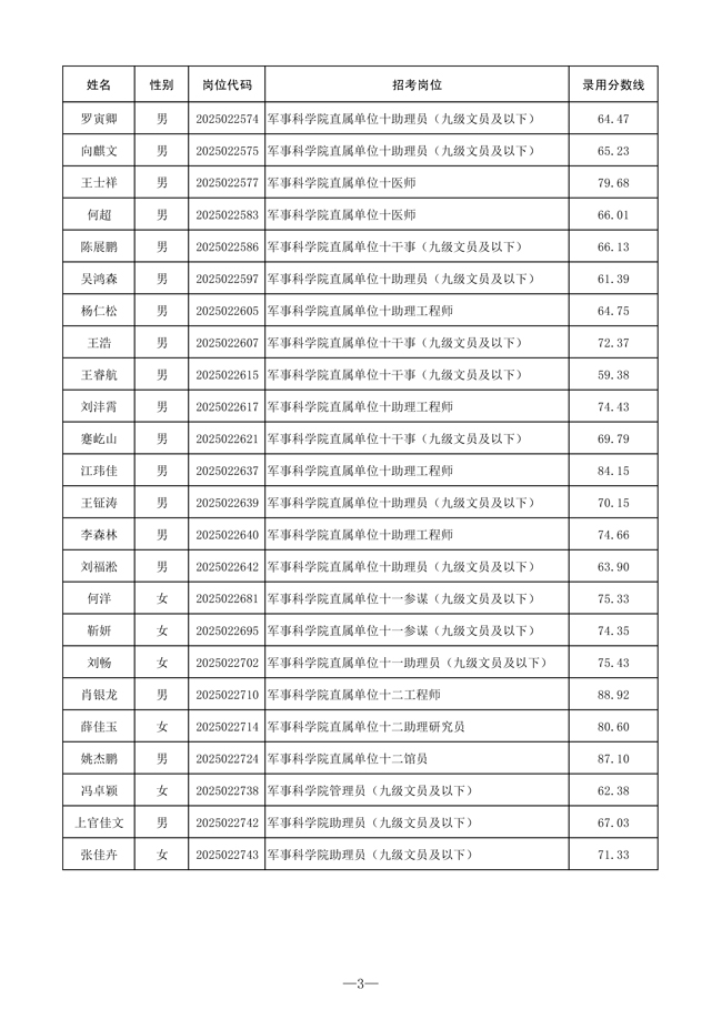 2025年軍隊文職擬錄用公示名單匯總 2025-09-22
