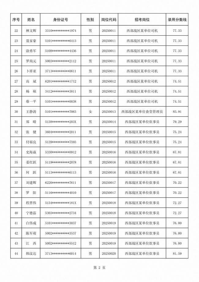 2025年武裝部文職人員擬錄用名單(含上岸分?jǐn)?shù)線) 2025-10-09