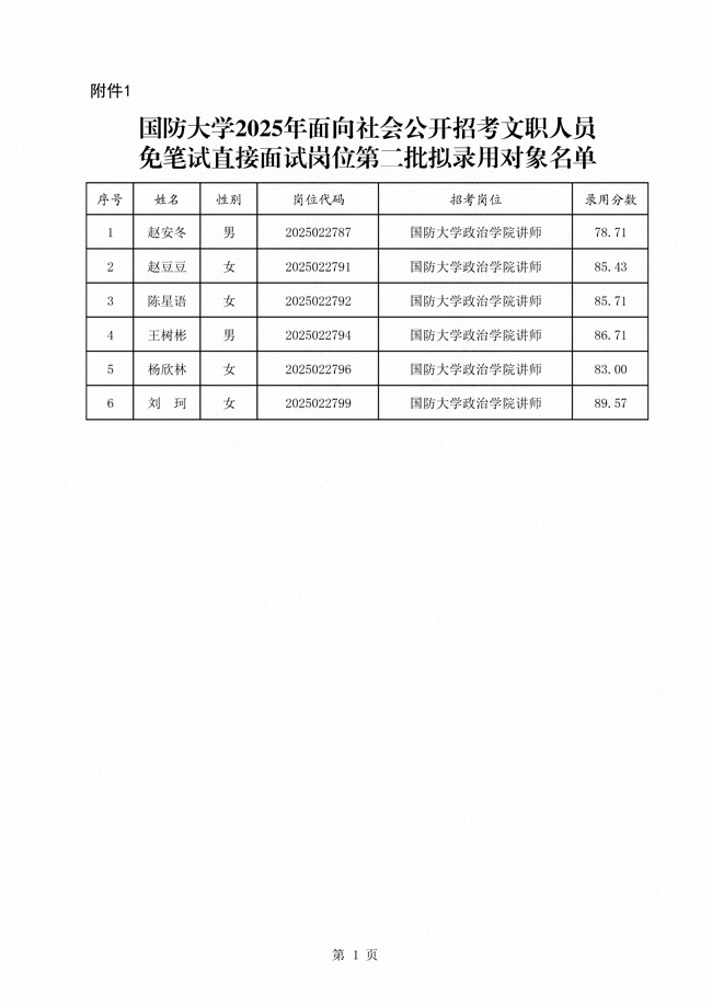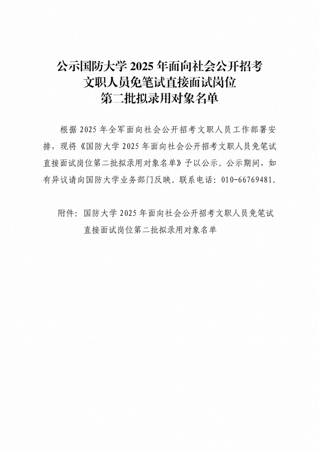 原文標題:公示國防大學(xué)2025年面向社會公開招考文職人員免筆試直接面試崗位第二批擬錄用對象名單
