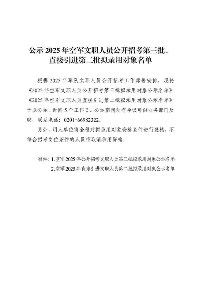 原文標題:公示2025年空軍文職人員公開招考第三批、直接引進第二批擬錄用對象名單