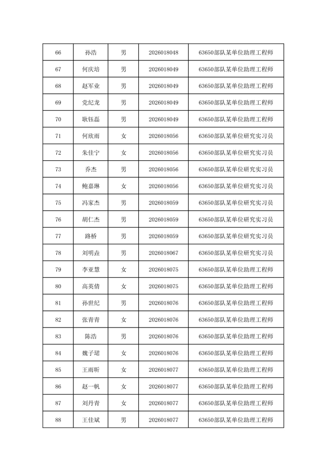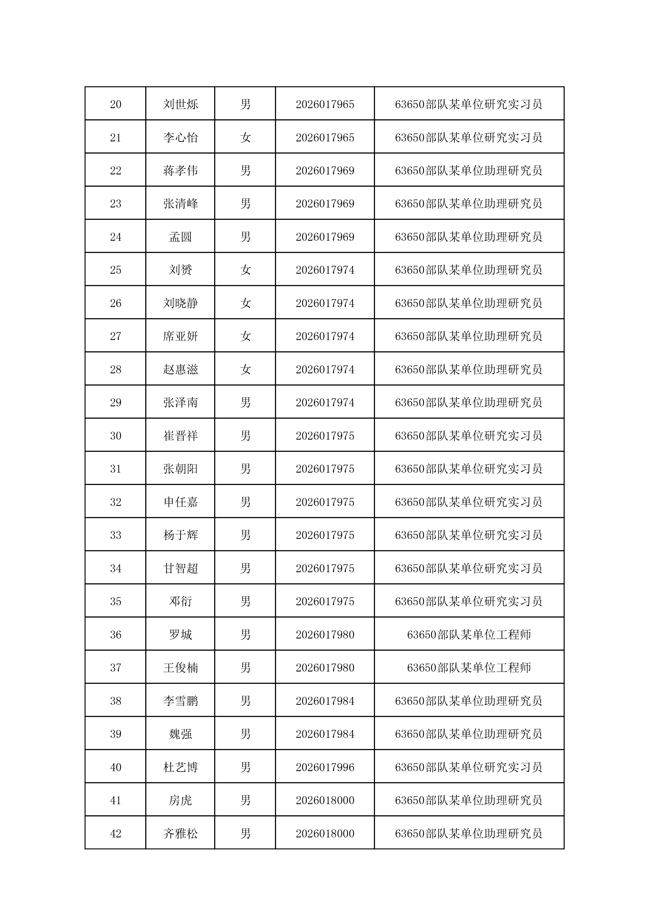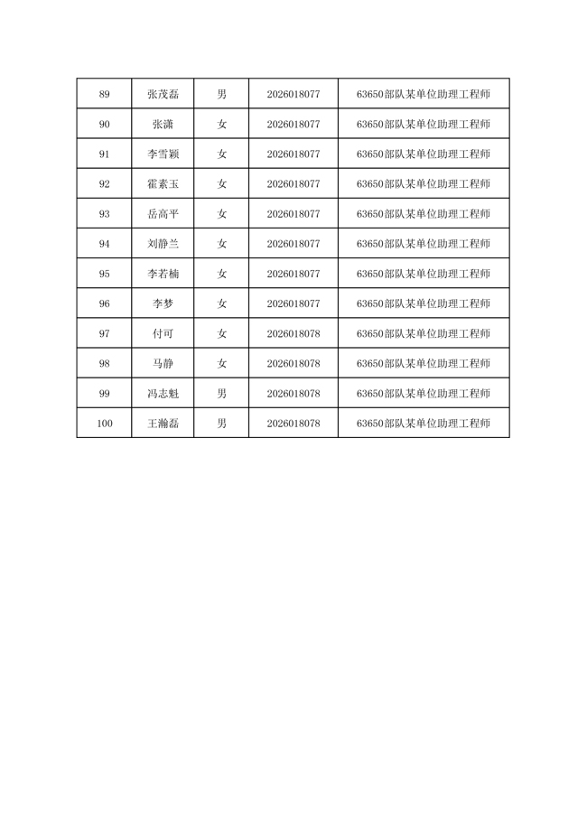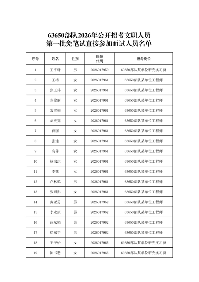 原文標題:公布63650部隊2026年公開招考文職人員第一批免筆試直接參加面試人員名單