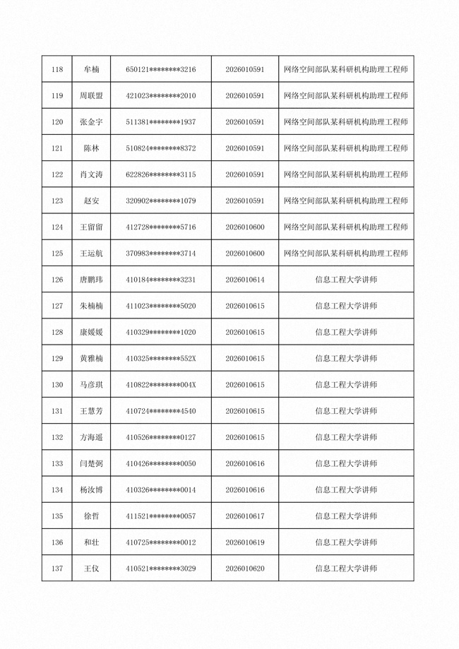 原文標(biāo)題:公布網(wǎng)絡(luò)空間部隊(duì)2026年公開招考文職人員第一批免筆試直接參加面試人員名單