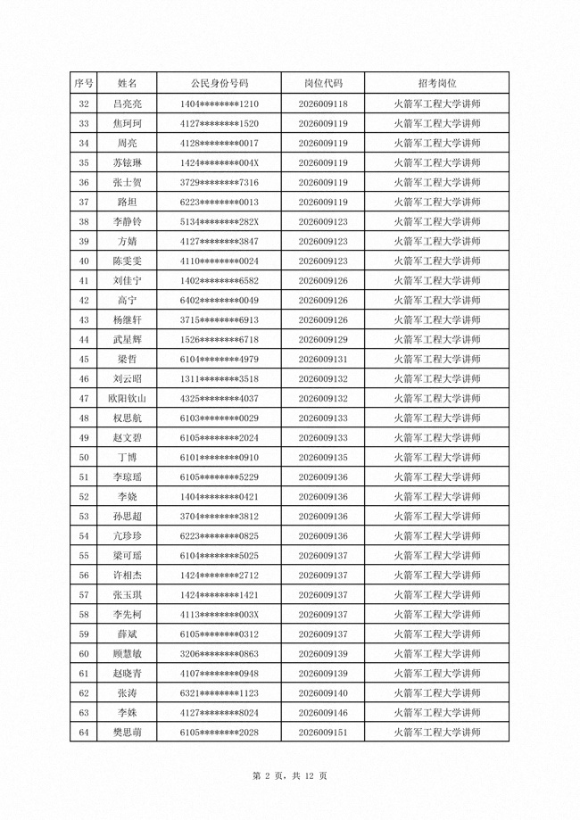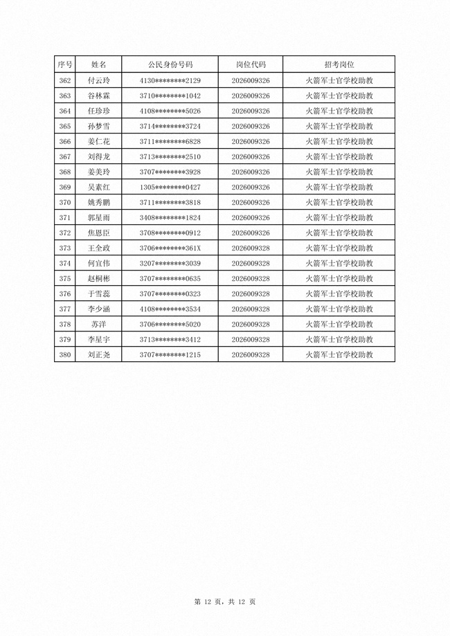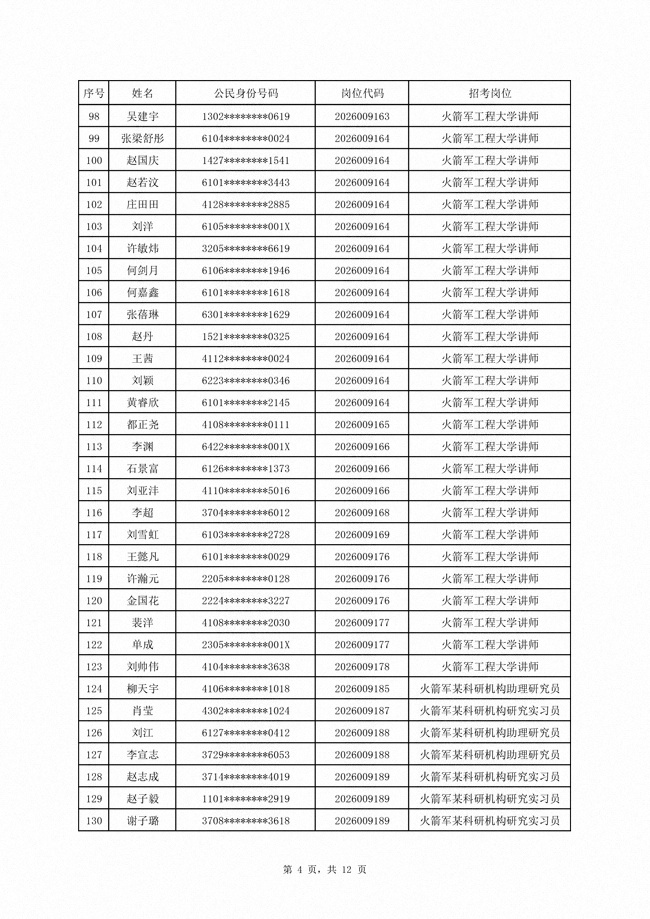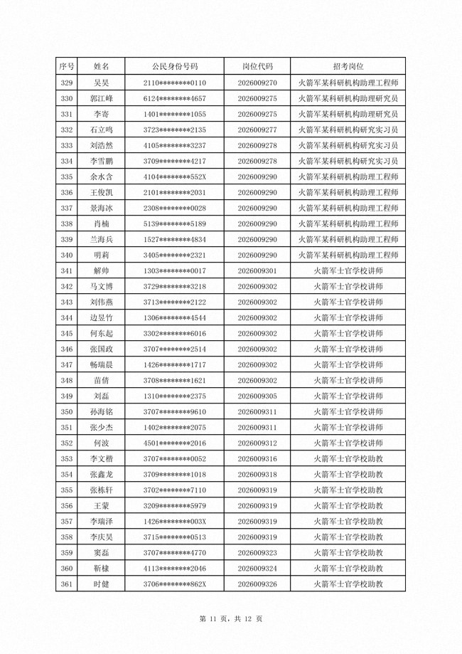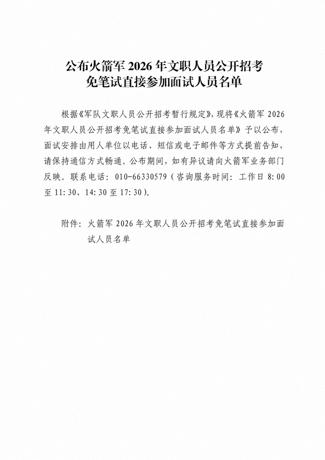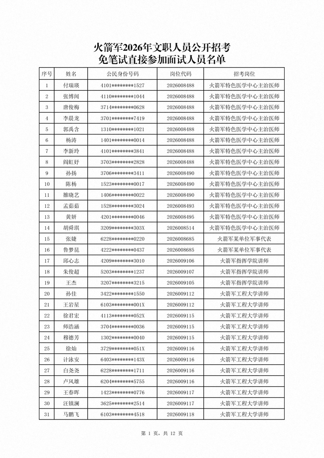 原文標(biāo)題:公布火箭軍2026年文職人員公開招考 免筆試直接參加面試人員名單