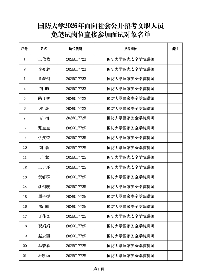 原文標(biāo)題:公布國(guó)防大學(xué)2026年面向社會(huì)公開(kāi)招考文職人員免筆試崗位直接參加面試對(duì)象名單